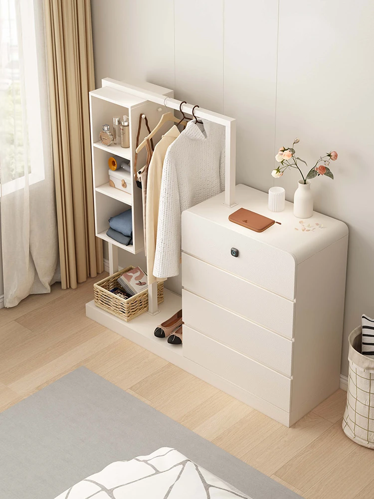 省スペースに最適!白のコンパクトチェストと一体型ハンガーラック - 室内用 壁際・ベッドエンドにぴったりの収納キャビネット