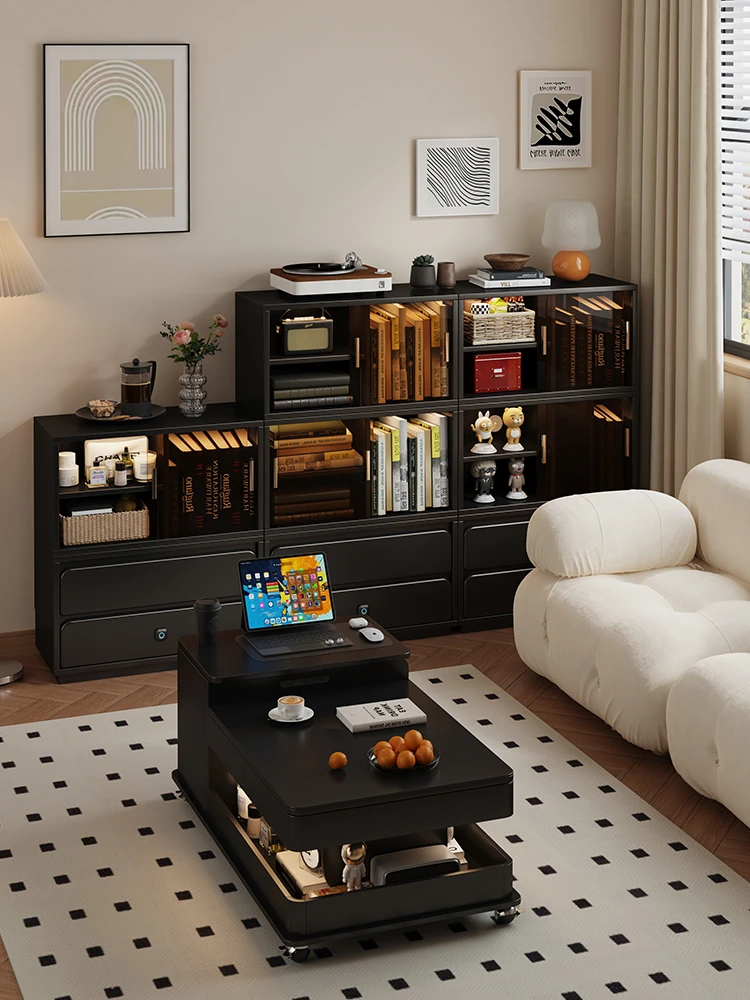 狭いスペースに最適!ガラス扉付きスマートリビング収納キャビネット - 寝室やリビングでも活躍、スタイリッシュなデザインでお部屋をスッキリ整理整頓!