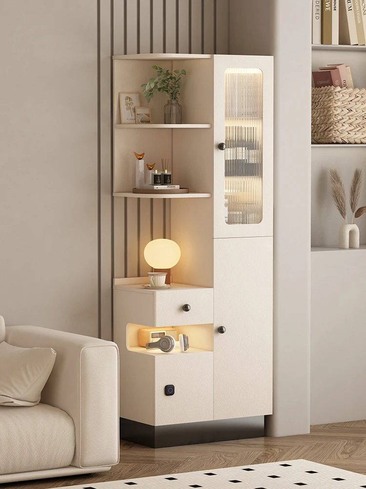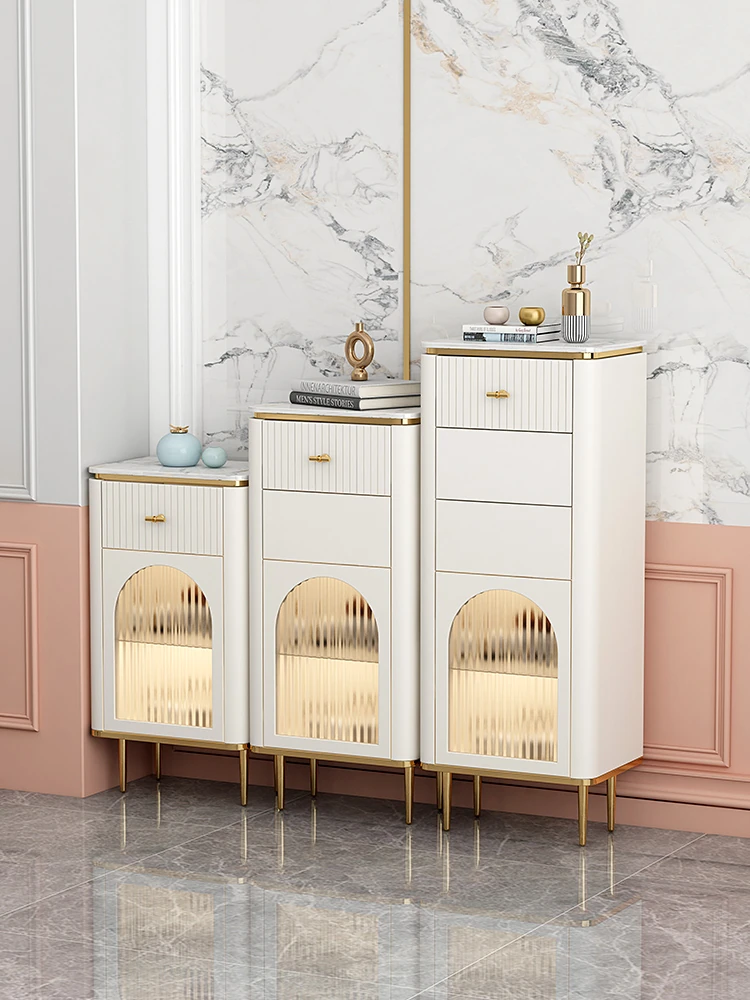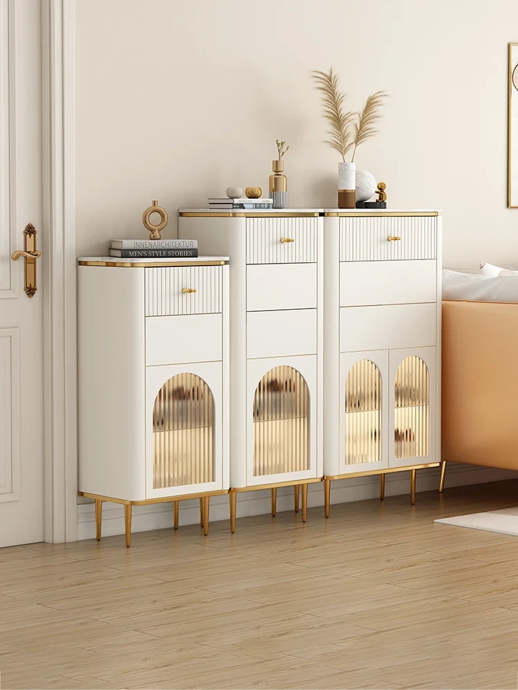 フランス風クリーム岩板超薄スタイルのサイドキャビネット - 小型キッチンに最適な収納力抜群、リビングルームの壁面収納にぴったり!幅30cmでスペースを有効活用!