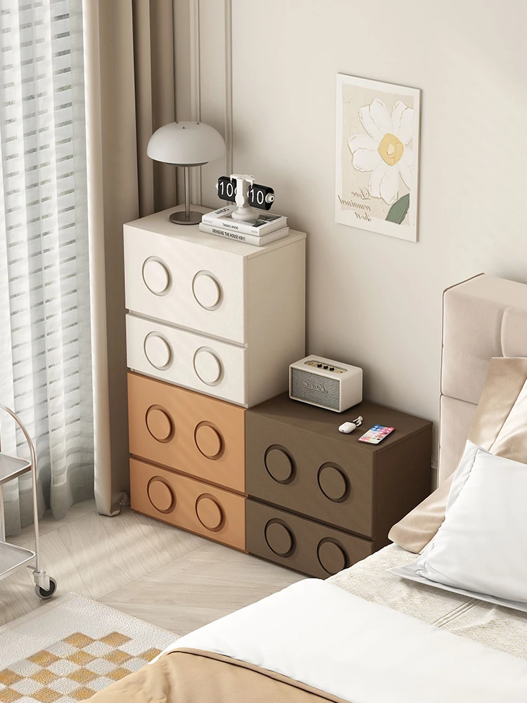 クリーム風デザイン!多機能収納ナイトテーブル - 寝室にぴったりのヴィンテージモジュールキャビネット、組み合わせ自由な家庭用ストレージキャビネット。
