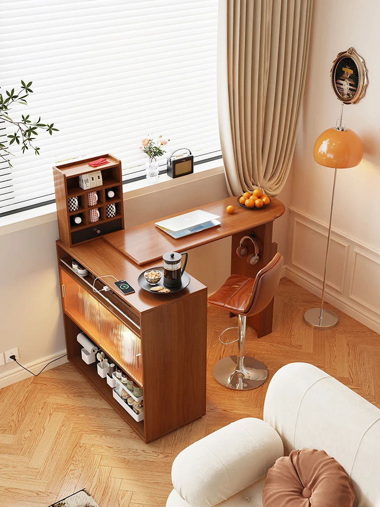 【魅力家居】みんなの憧れ!ハイカウンターバーテーブル一体型キャビネット - 木製トップ、書斎スペース&リビングの間仕切りにも!バルコニーのリラクゼーションエリアに最適