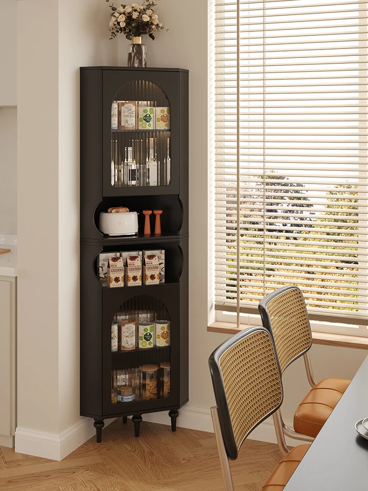 アメリカンレトロL字型コーナーキャビネット:小スペースに最適!省スペースで壁にぴったり収まる、ダイニングにぴったりな収納キャビネット。おしゃれにキッチン用品やスナックを整理整頓!