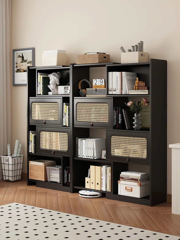 ヴィンテージ風ラタン編みベッドルームテレビキャビネット - 小スペースでもぴったり!アメリカンレトロなマルチ収納、ベッドエンドやブックケースに最適