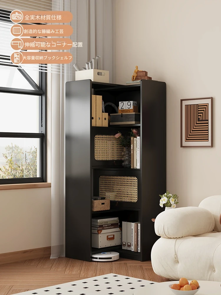 天然木製ソファにぴったり!多層コーナー収納ラック - 壁際に置けるコンパクトなデザイン、リビングに最適な三角型シェルフ。テレビ台の横に置いて、おしゃれに収納!小型住宅に最適。