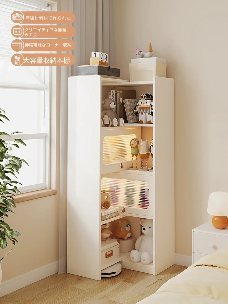 【省空间设计】幅30cm!安全ロック付きコンパクト本棚&ストレージキャビネット - リビングのテレビ横やソファサイドにぴったり!