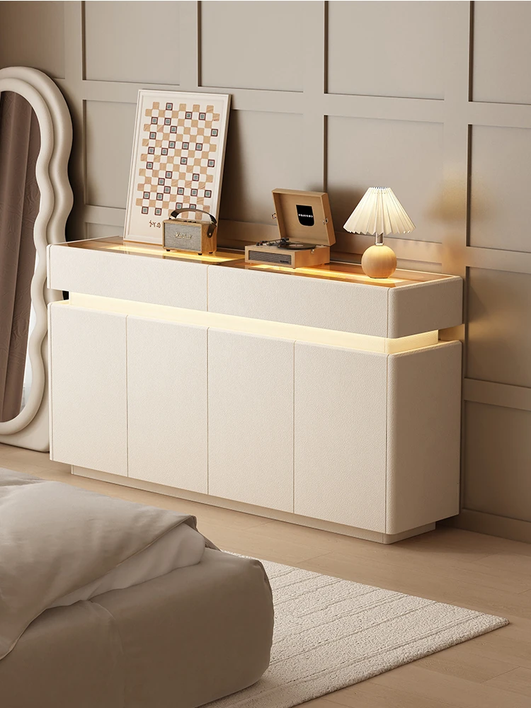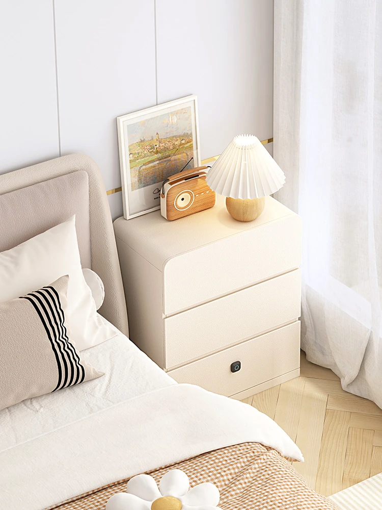 フレンチクリームスタイルの大容量ベッドサイドキャビネット:ワンタッチ指紋ロック付き、40cm幅で省スペース!寝室の品格を高めるエレガントな1メートル収納キャビネットです。