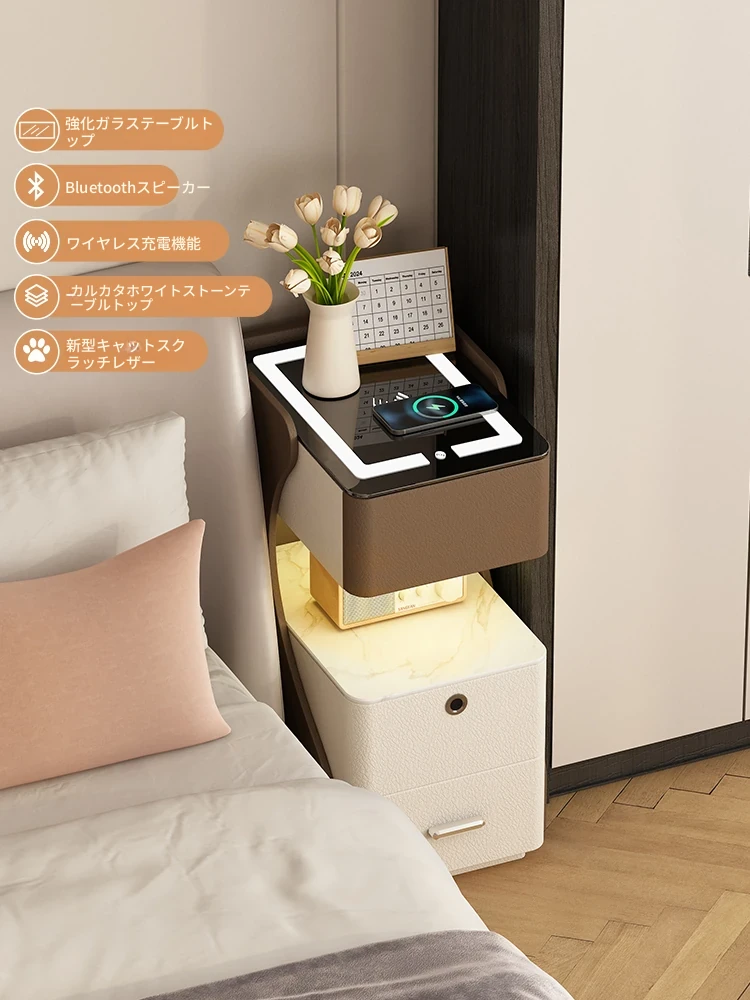 現代的でシンプルなデザインの多機能ベッドサイドキャビネット - セキュリティボックス付き、ハイエンドスマートベッドサイドキャビネット、パスワードロック、ワイヤレス充電対応!あなたの生活をクラスアップする一品です。