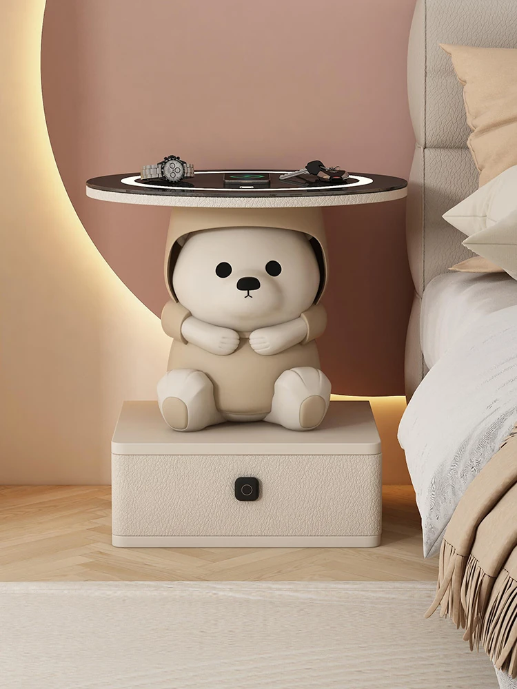 【2024年新作】可愛い女の子に人気!おしゃれなガラス製ナイトテーブル・充電機能付きモダンデザインのサイドテーブル