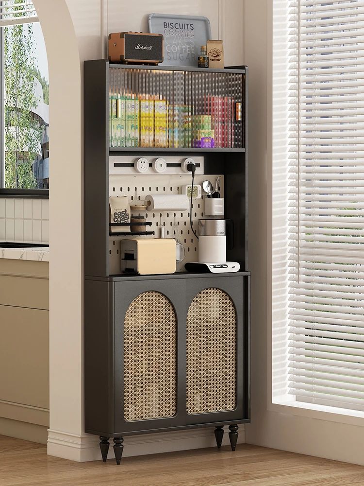 フレンチクリームスタイル多機能ハイキャビネット:省スペースなキッチン壁面収納に最適!60cm・80cmの選べるサイズで小型住宅にぴったりフィット。
