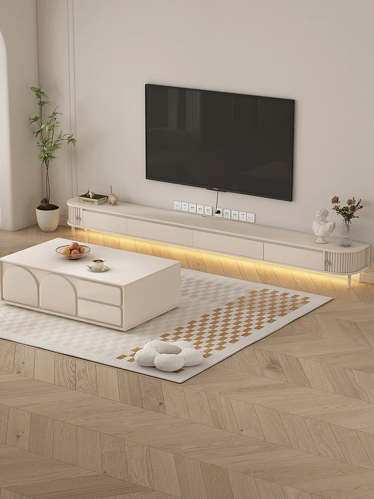 アメリカンレトロ40cm高テレビボード|モダンシンプル設計の小型リビングに最適!2m4のテレビ台とコーヒーテーブル組み合わせ、収納力抜群でおしゃれな空間を演出。