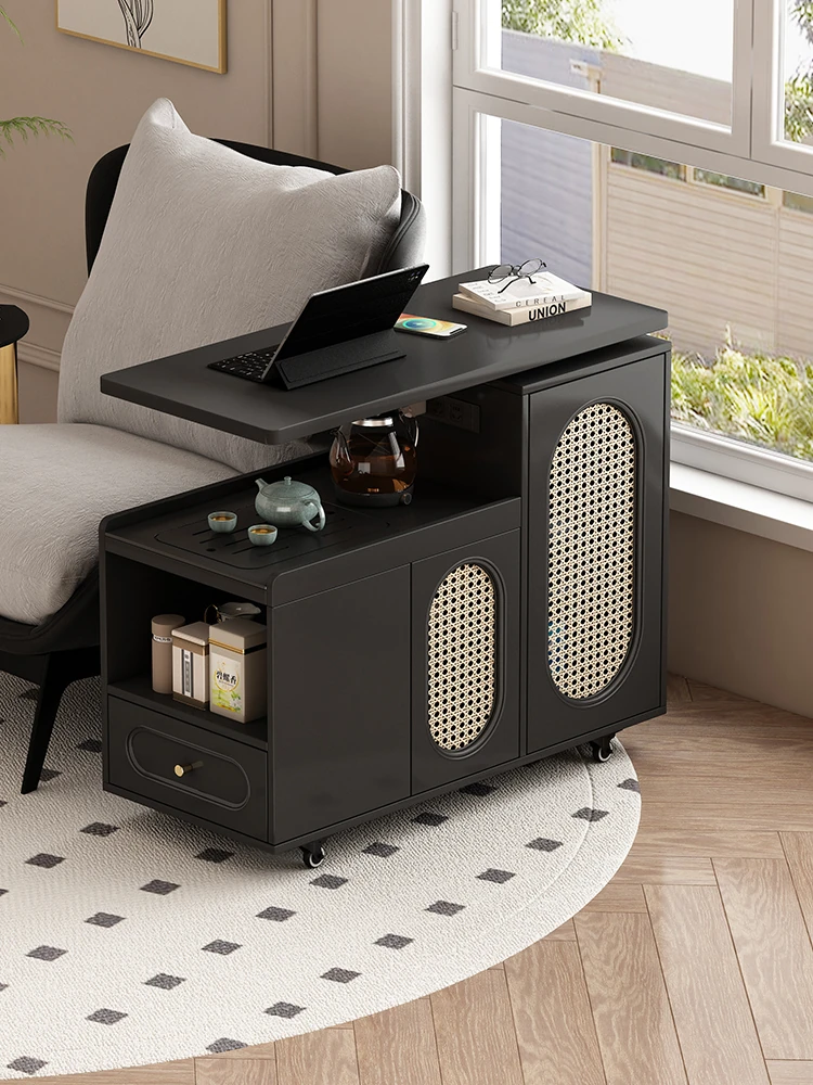 Rock plate telescopic Movable tea table [three anti-bacterial black + Sheung Shui tea full automatic]]