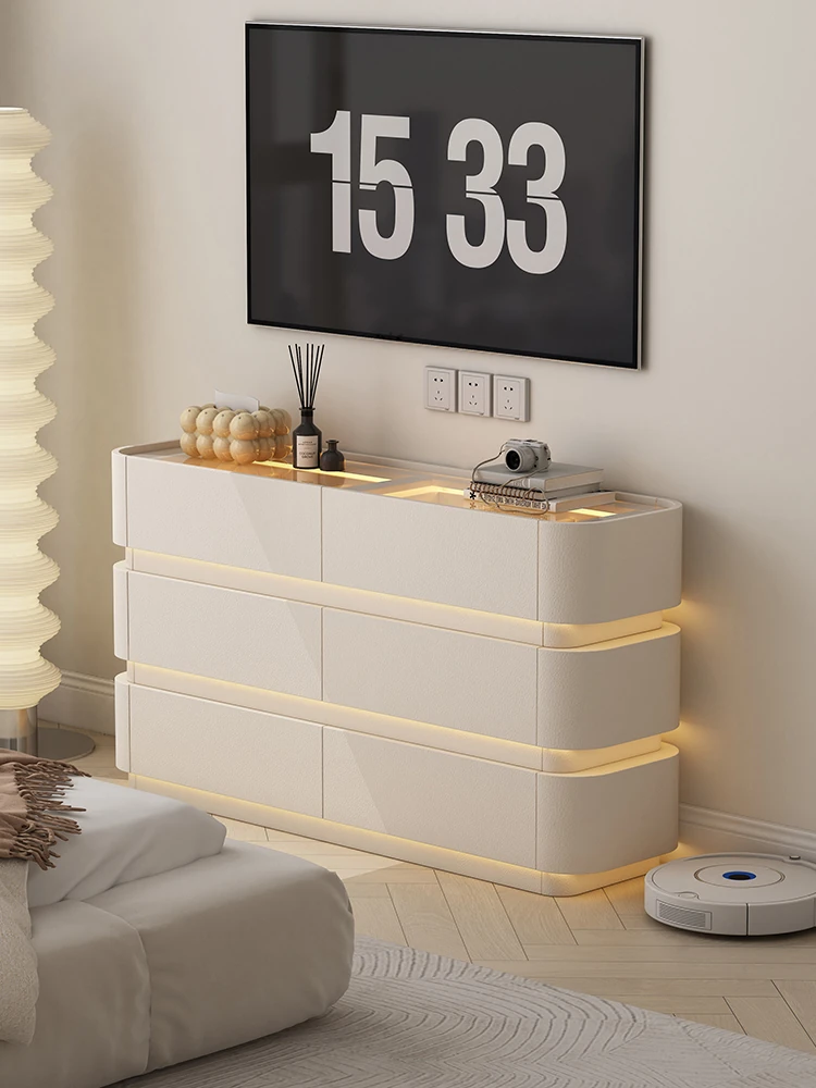 Luxurious Cream Bedroom End Cabinet - Narrow Dresser with Rounded Corners, Ideal for Master Bedroom TV Stand, Ultra-Slim and Eco-Friendly with No Formaldehyde
