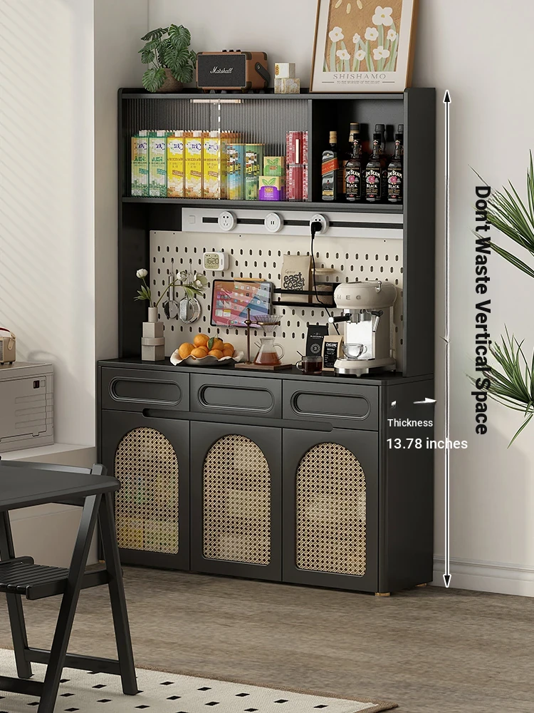 French Vintage Dual-Layer Sideboard: Hidden Dining Table Cabinet & Solid Wood Storage Solution - Perfect Coffee Machine Display & Wine Cabinet