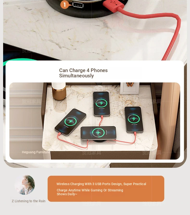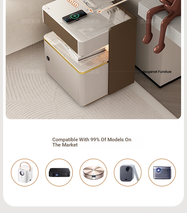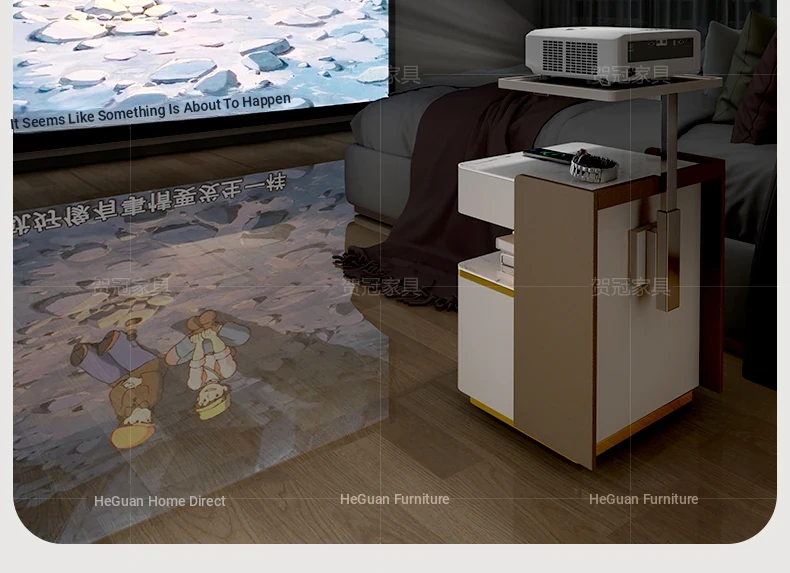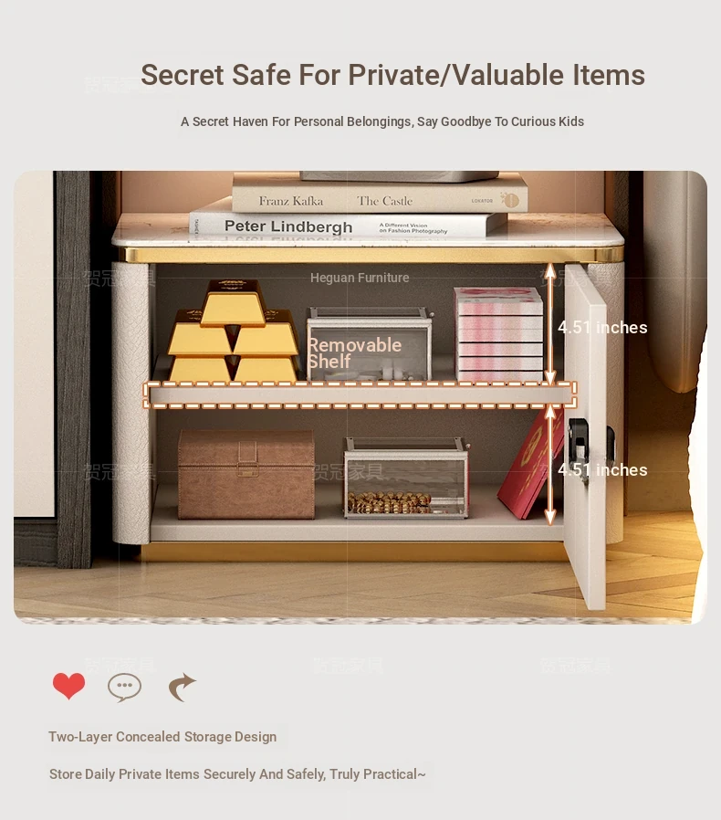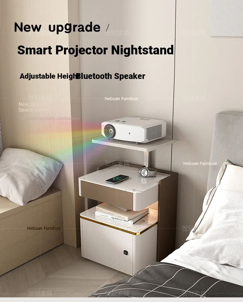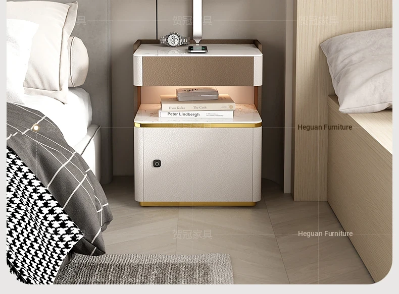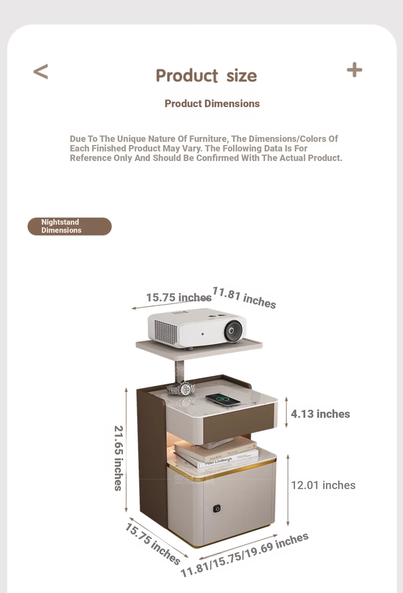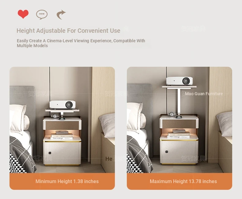 Cream Style Adjustable Height Nightstand with Lock - 40cm Wide, Modern Minimalist Design, Coffee Color Bedside Cabinet for Bedroom