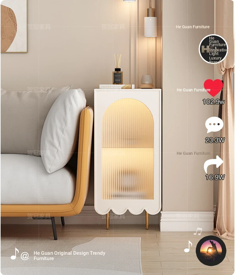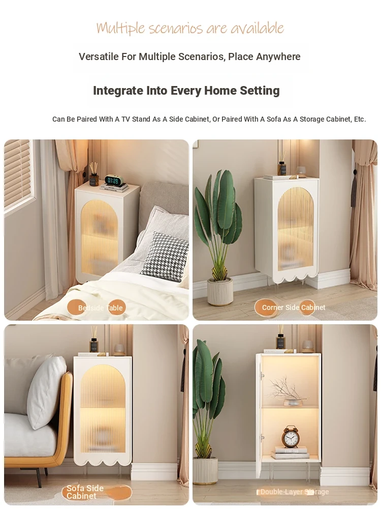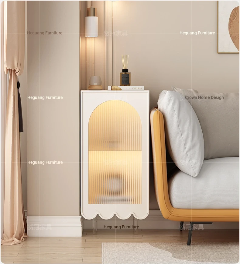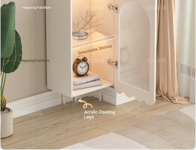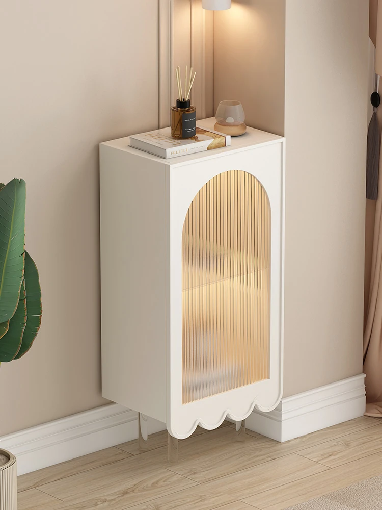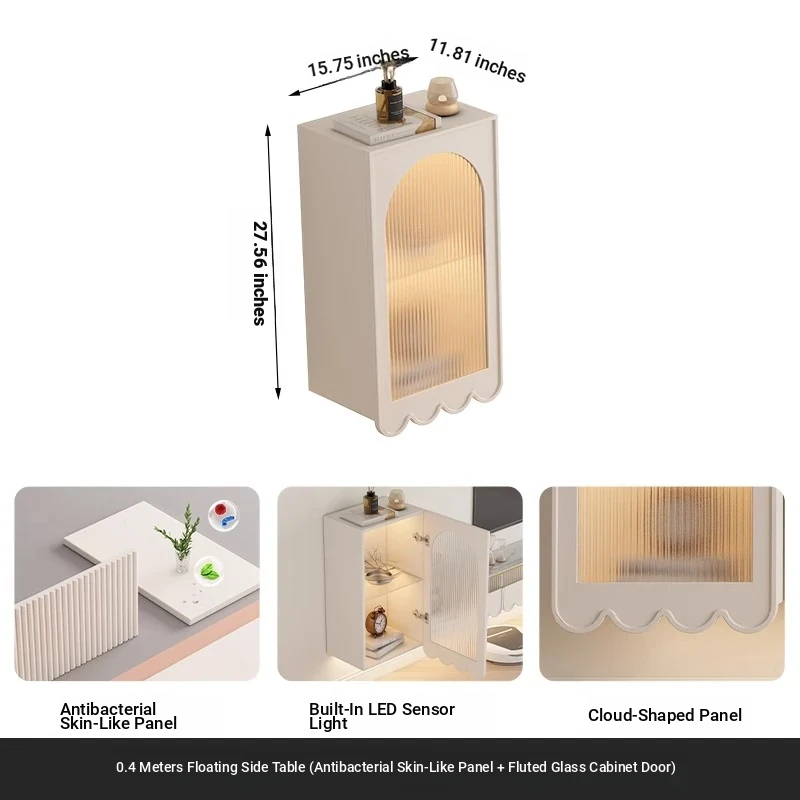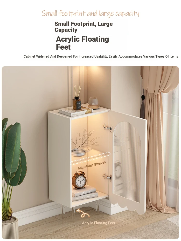 Sleek Cream Corner Cabinet for Living Room - Floating Wall-Mounted Minimalist Storage & Organization Solution