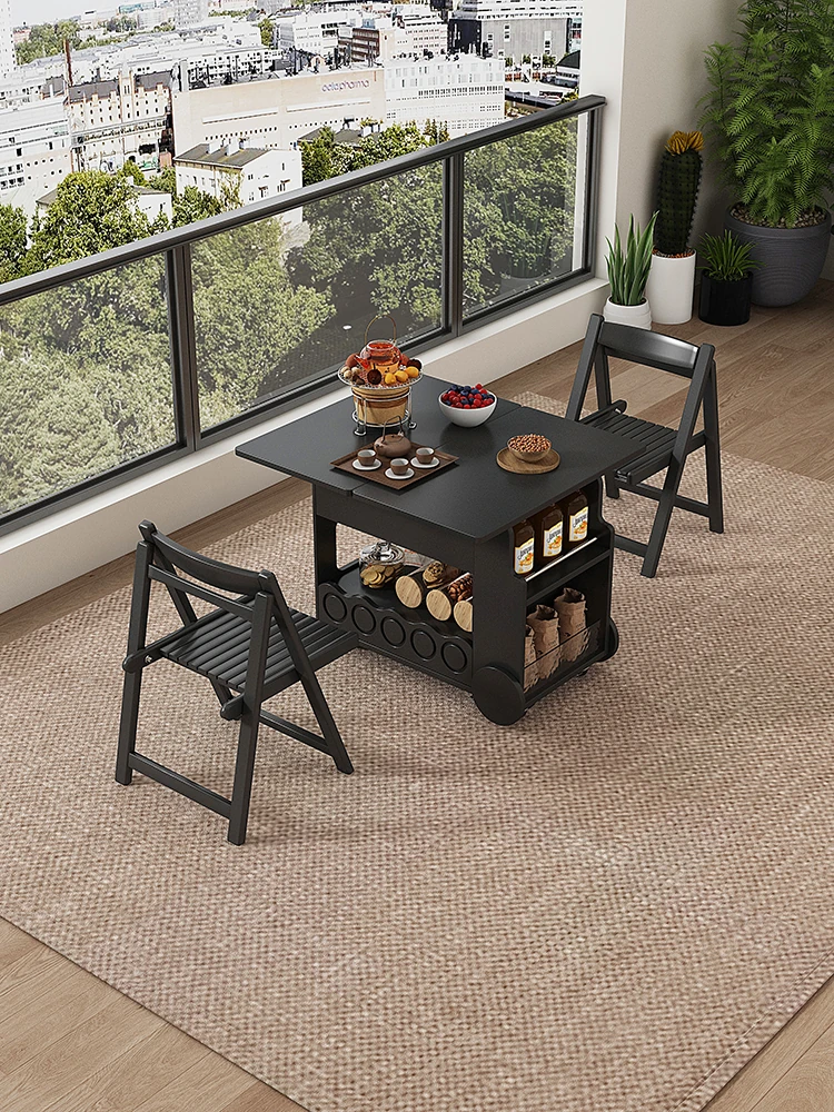 1.2メートル昇降折りたたみカフェテーブルダイニングテーブル【高級ブラック】+無垢材折りたたみ背もたれ椅子*2