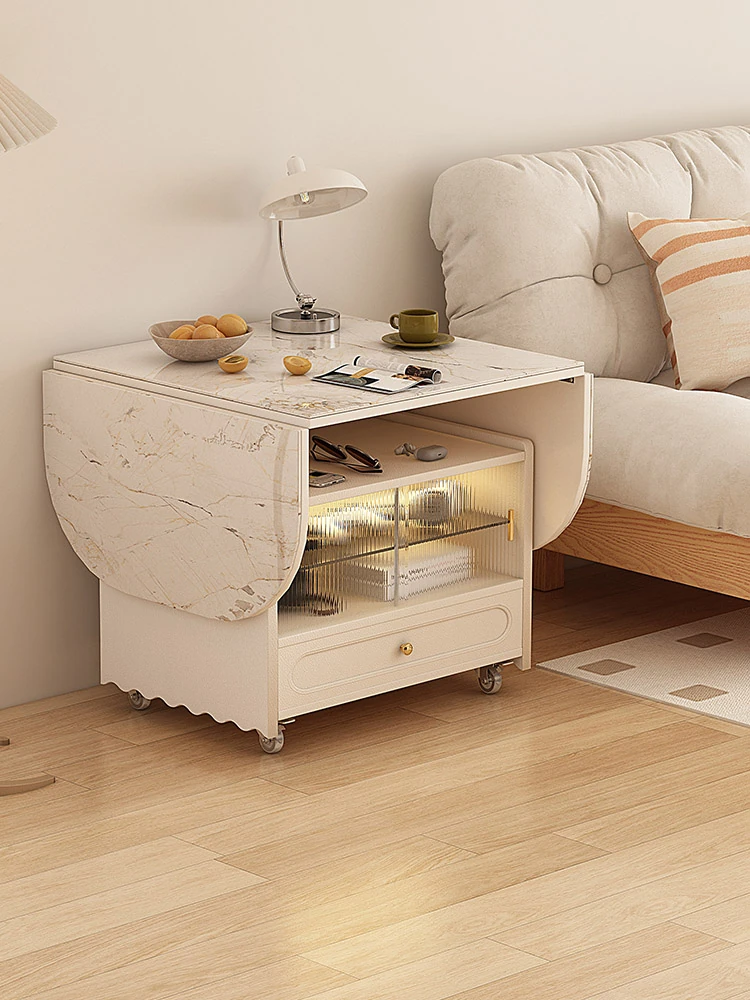 岩板伸縮移動カフェテーブル【抗菌皮質ホワイト+自動給水茶】