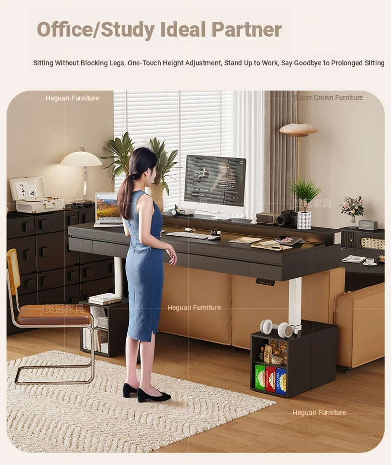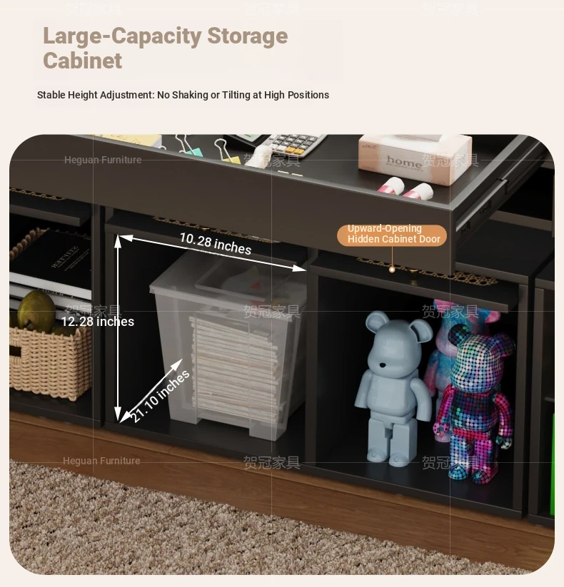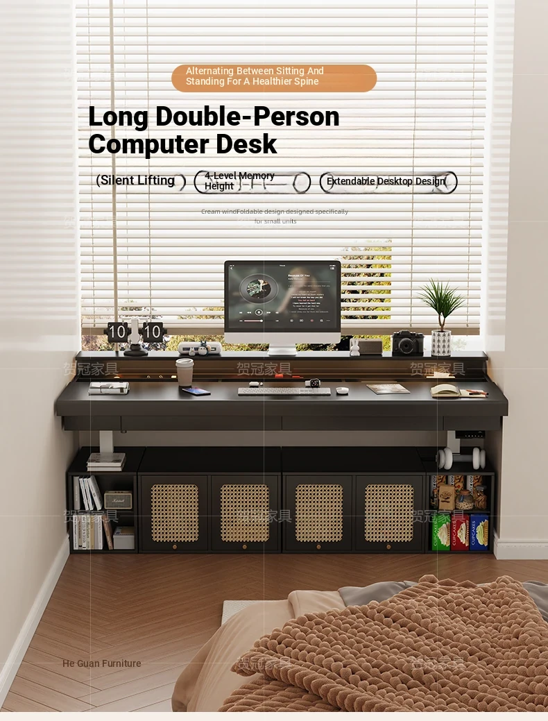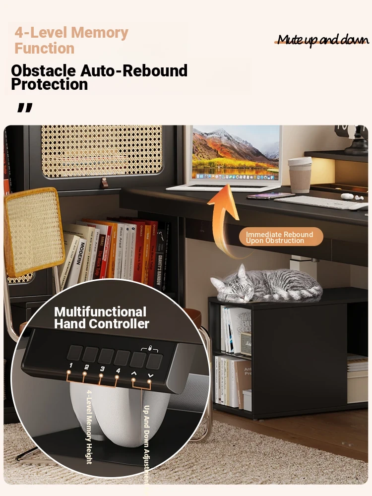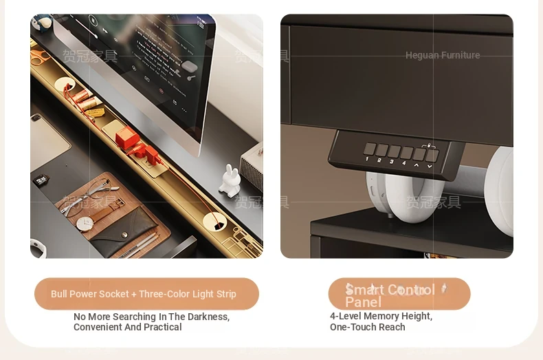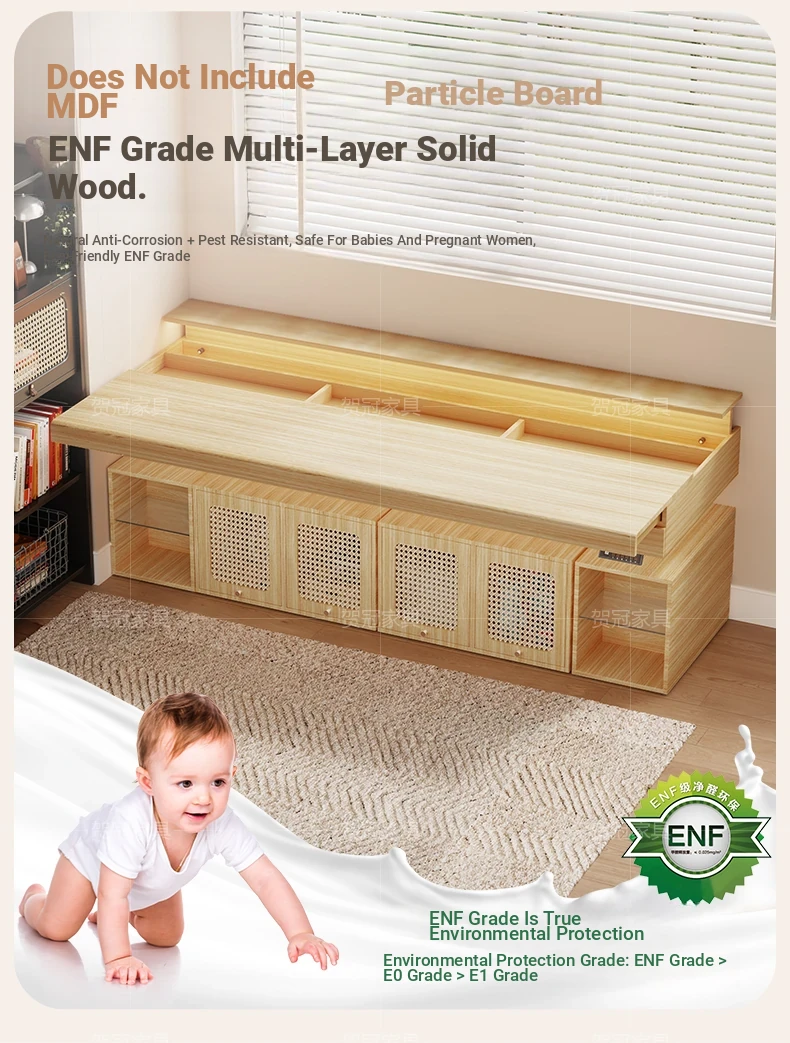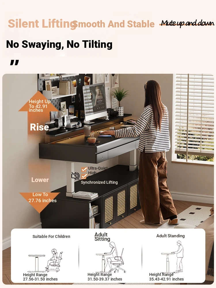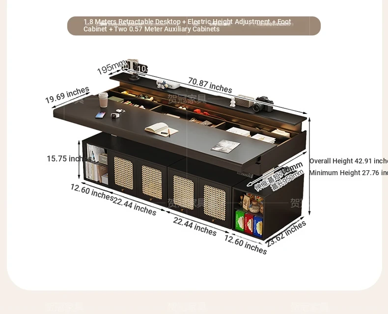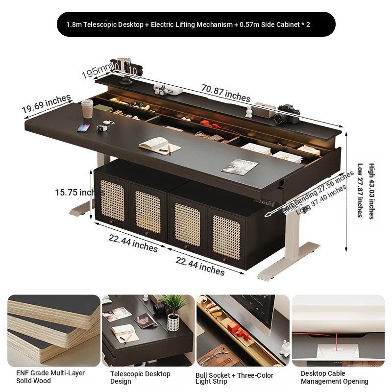 70.87 in retractable desktop desk + electric lift +22.44 in sub-Cabinet * 2 [ENF grade solid wood]]