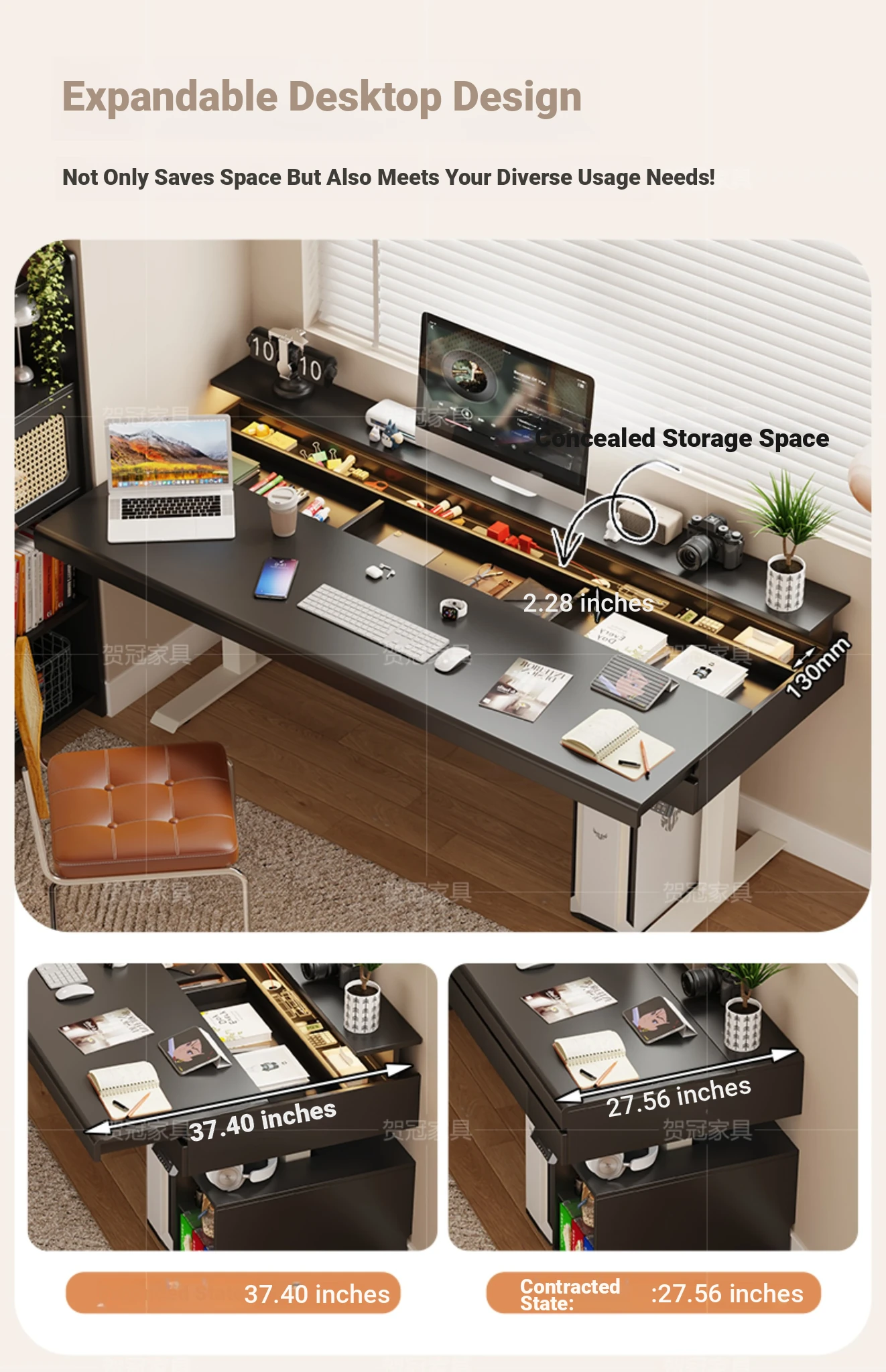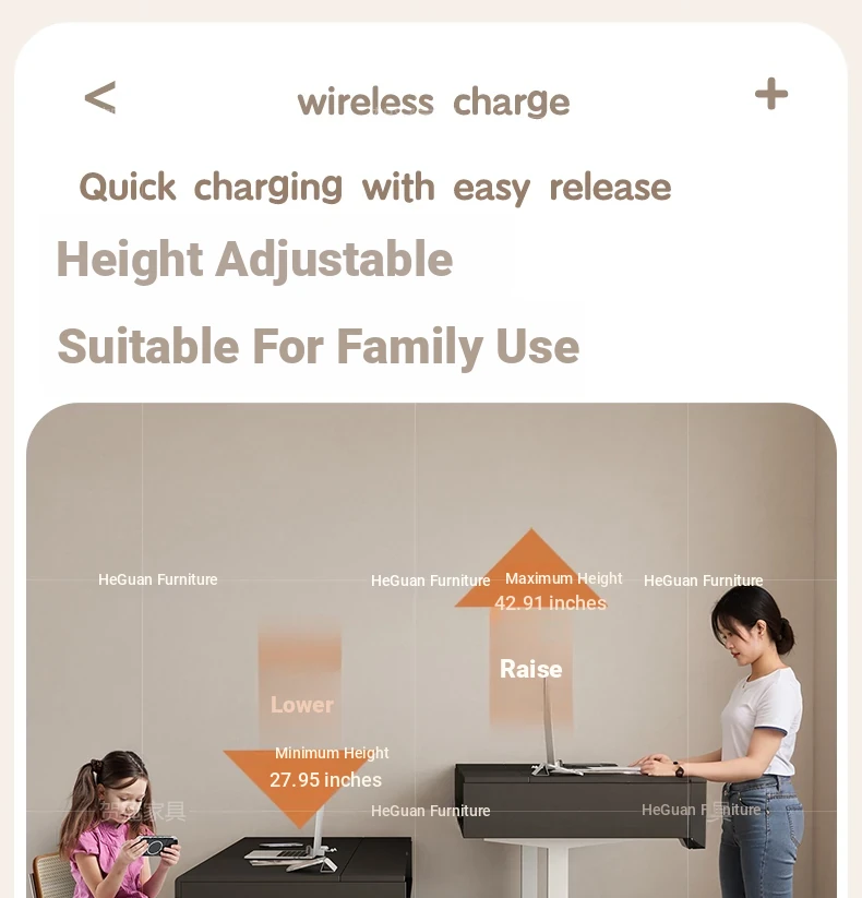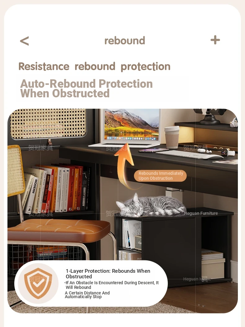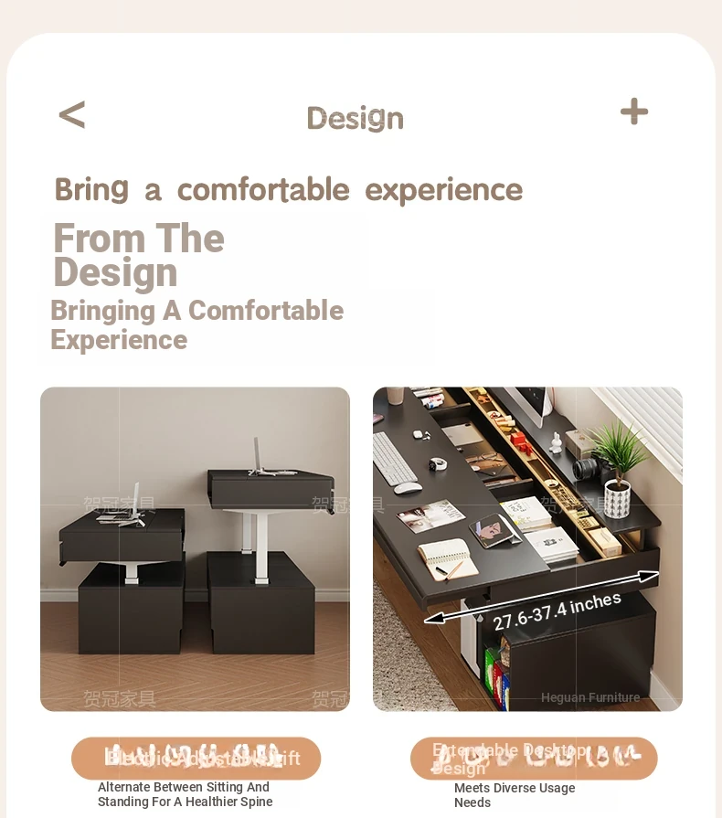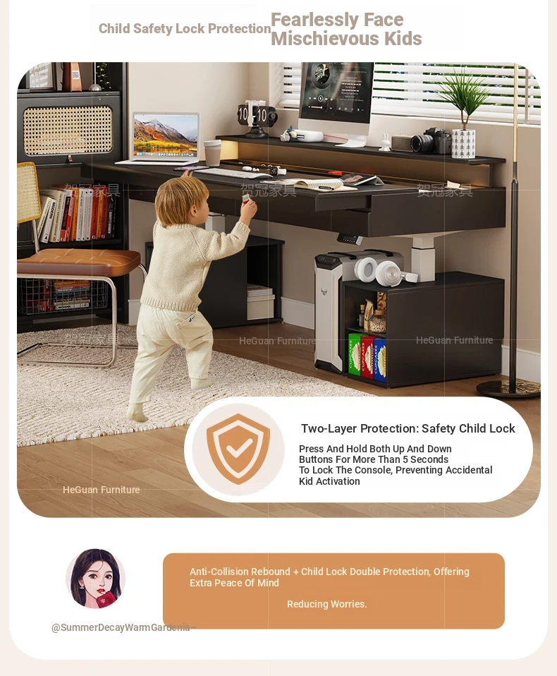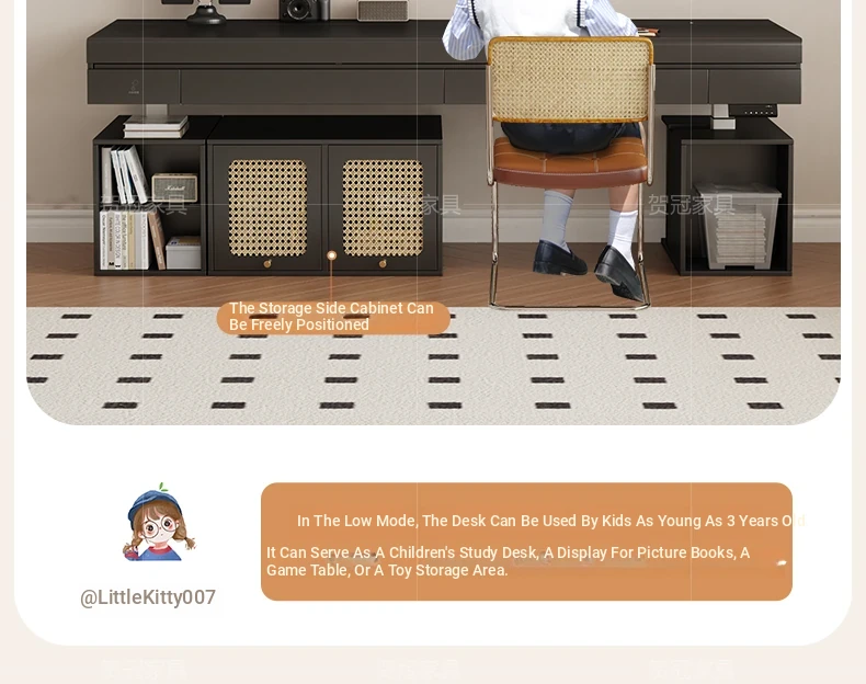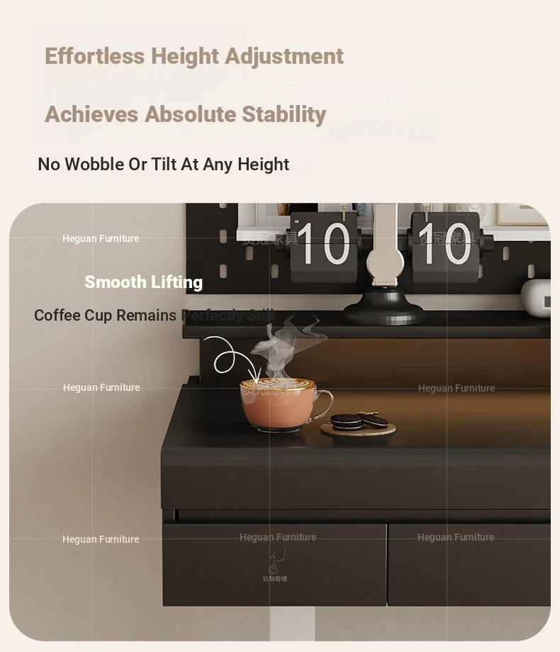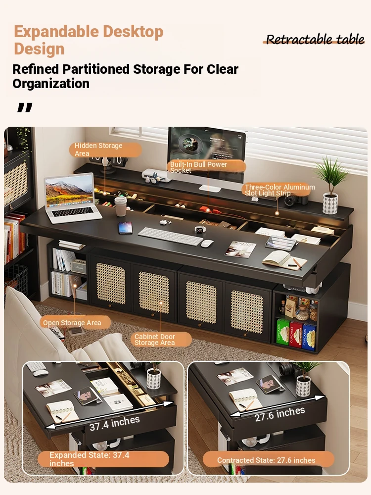 70.87 in retractable desktop desk + electric lift +22.44 in sub-Cabinet * 2 [ENF grade solid wood]]
