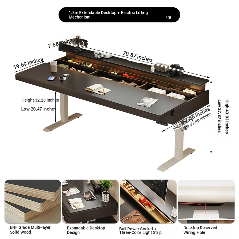 70.87 in retractable desktop desk + electric lift [ENF grade solid wood]]