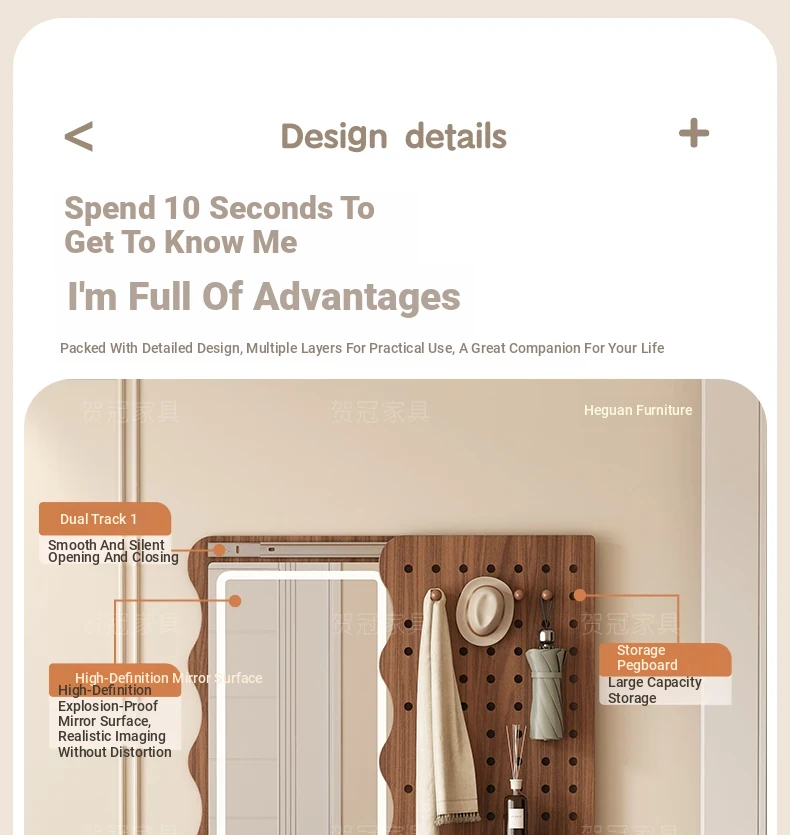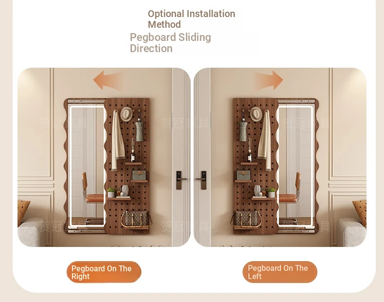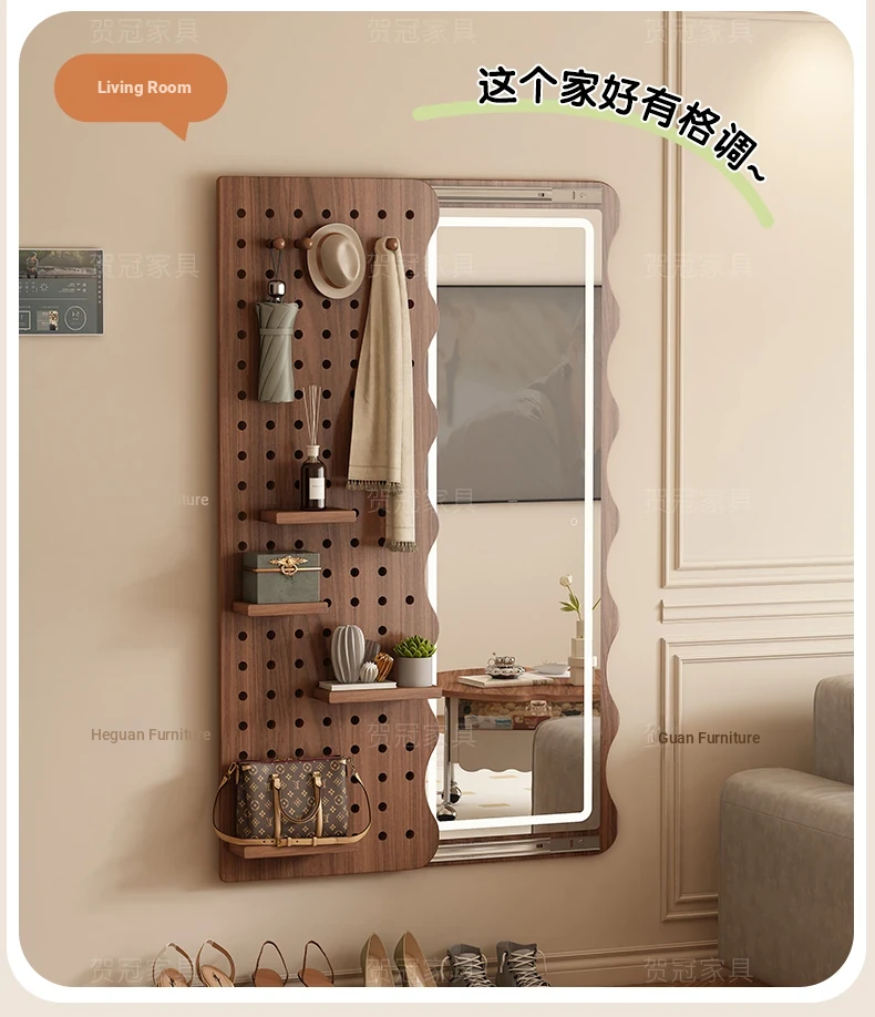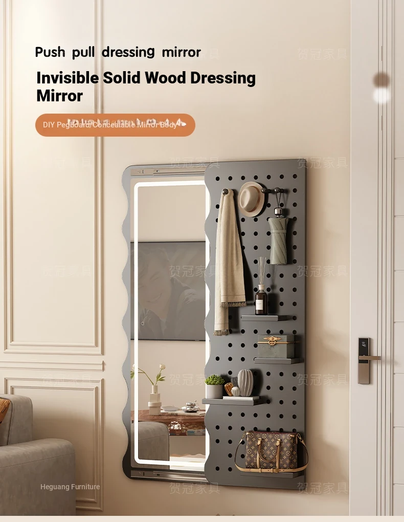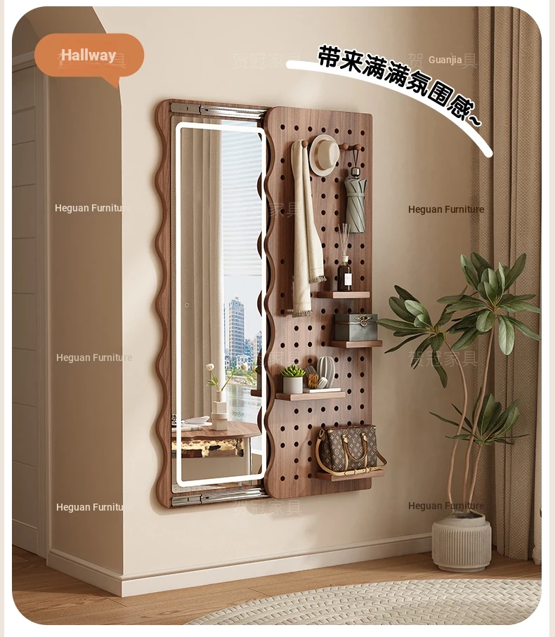 Vintage Full-Length Entryway Mirror with Integrated Coat Rack - Sliding Dressing Mirror and Wall-Mounted Solid Wood Hanger