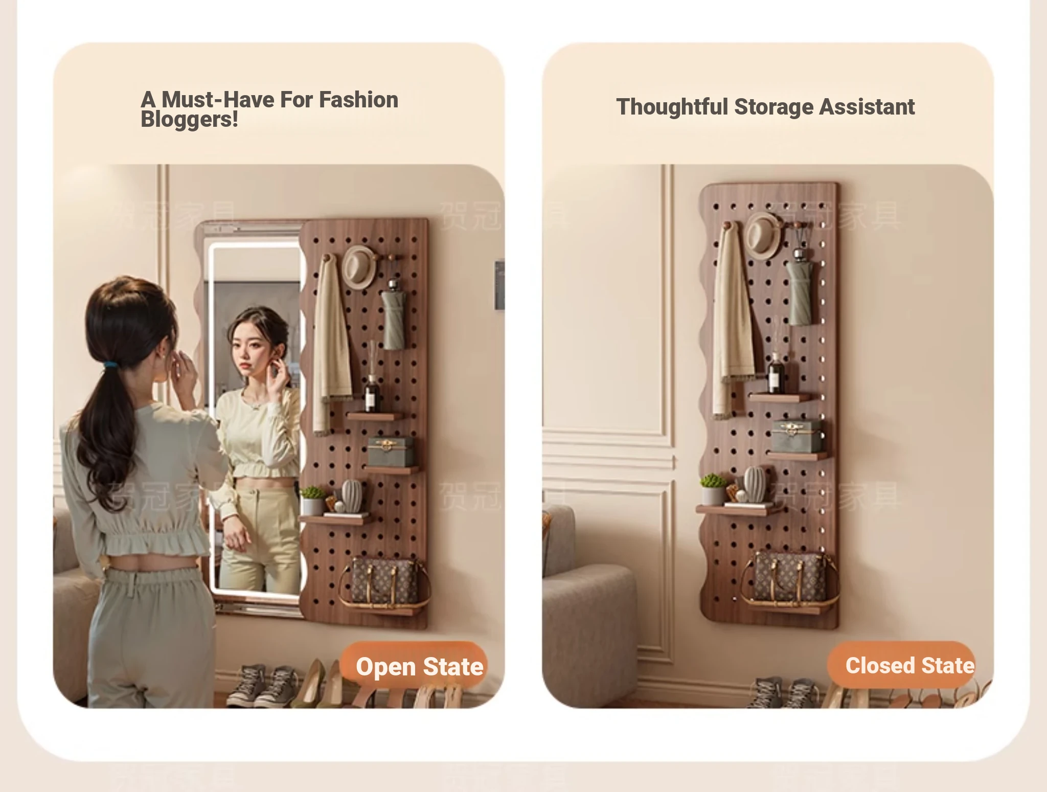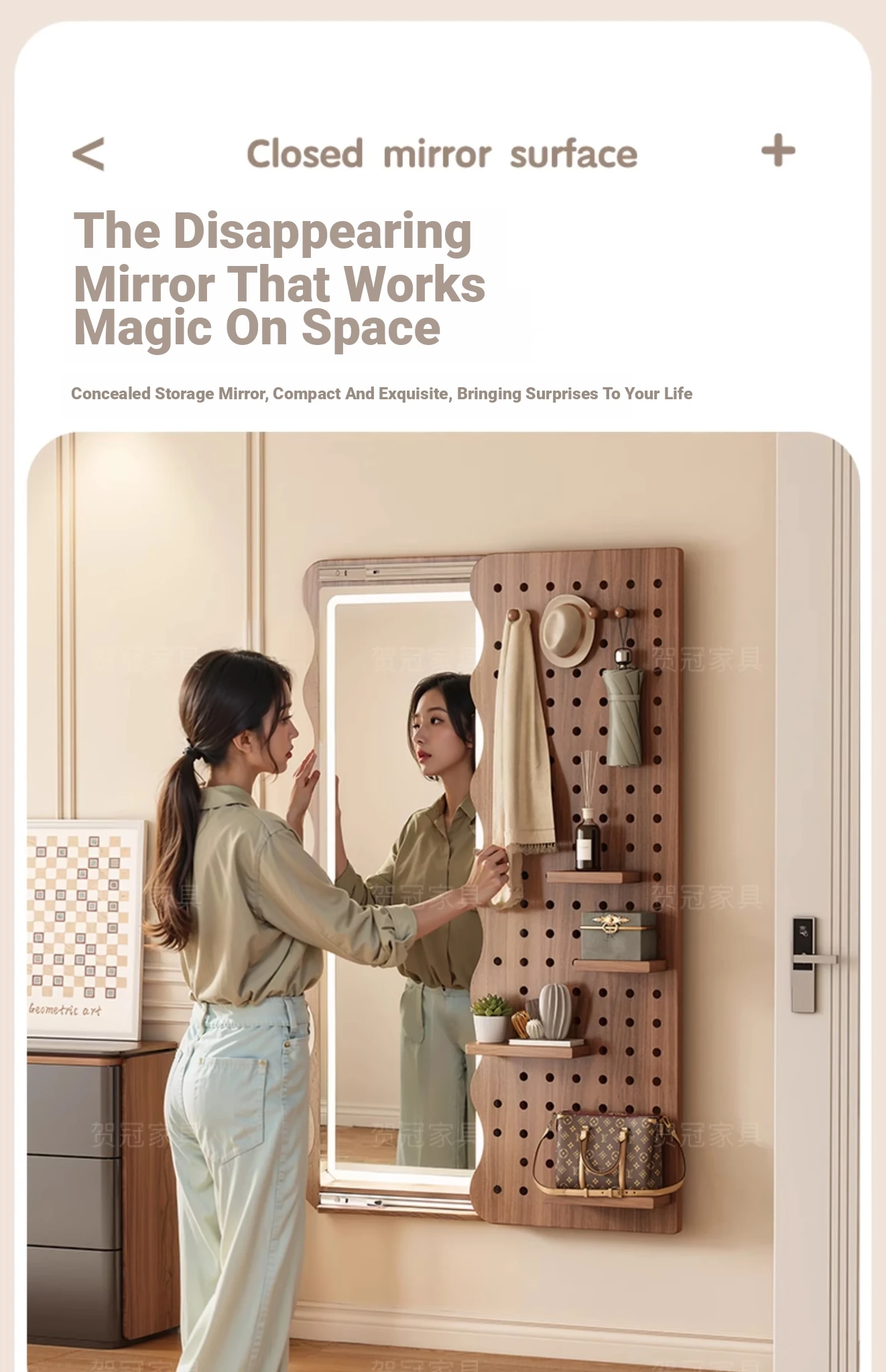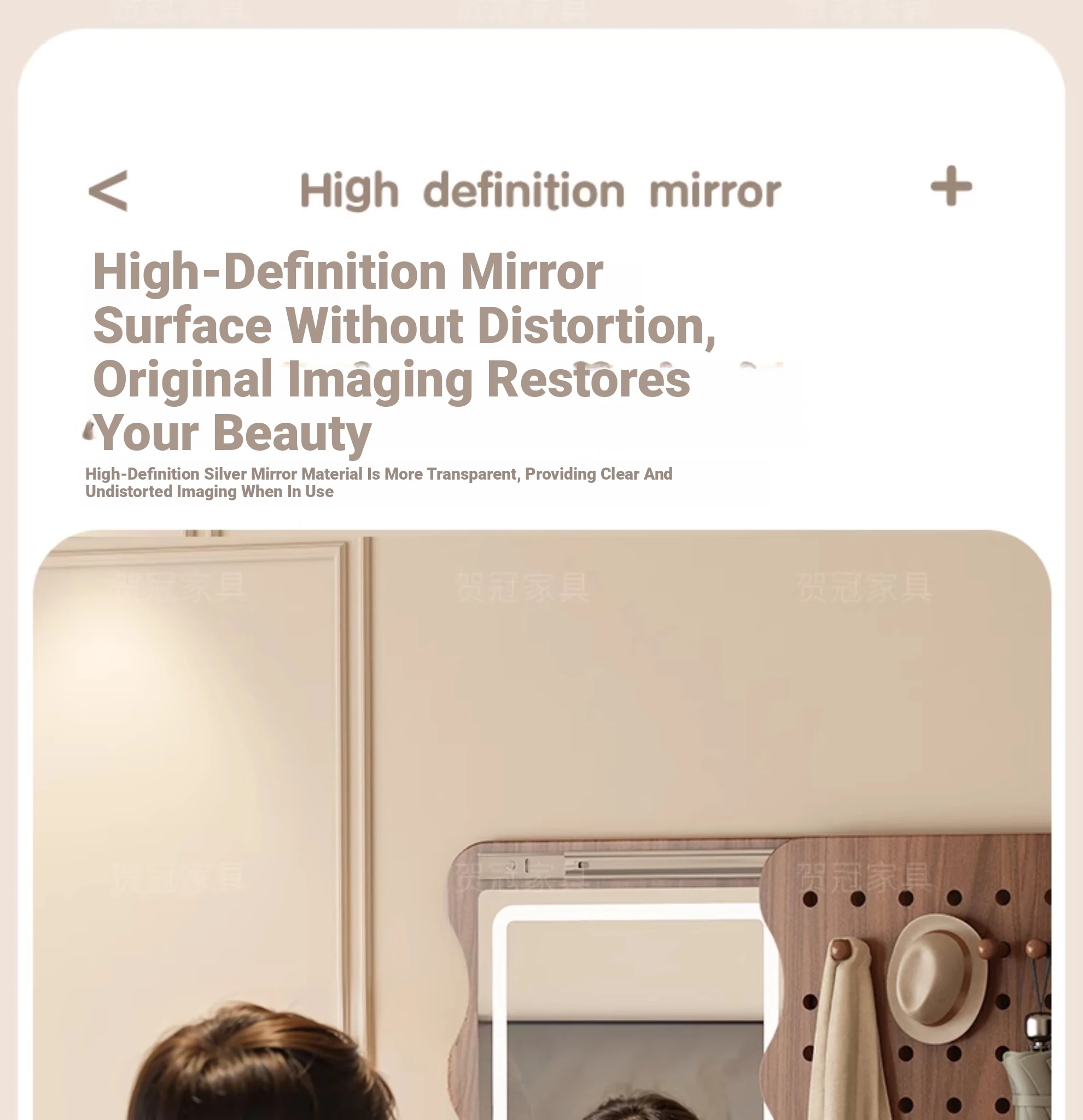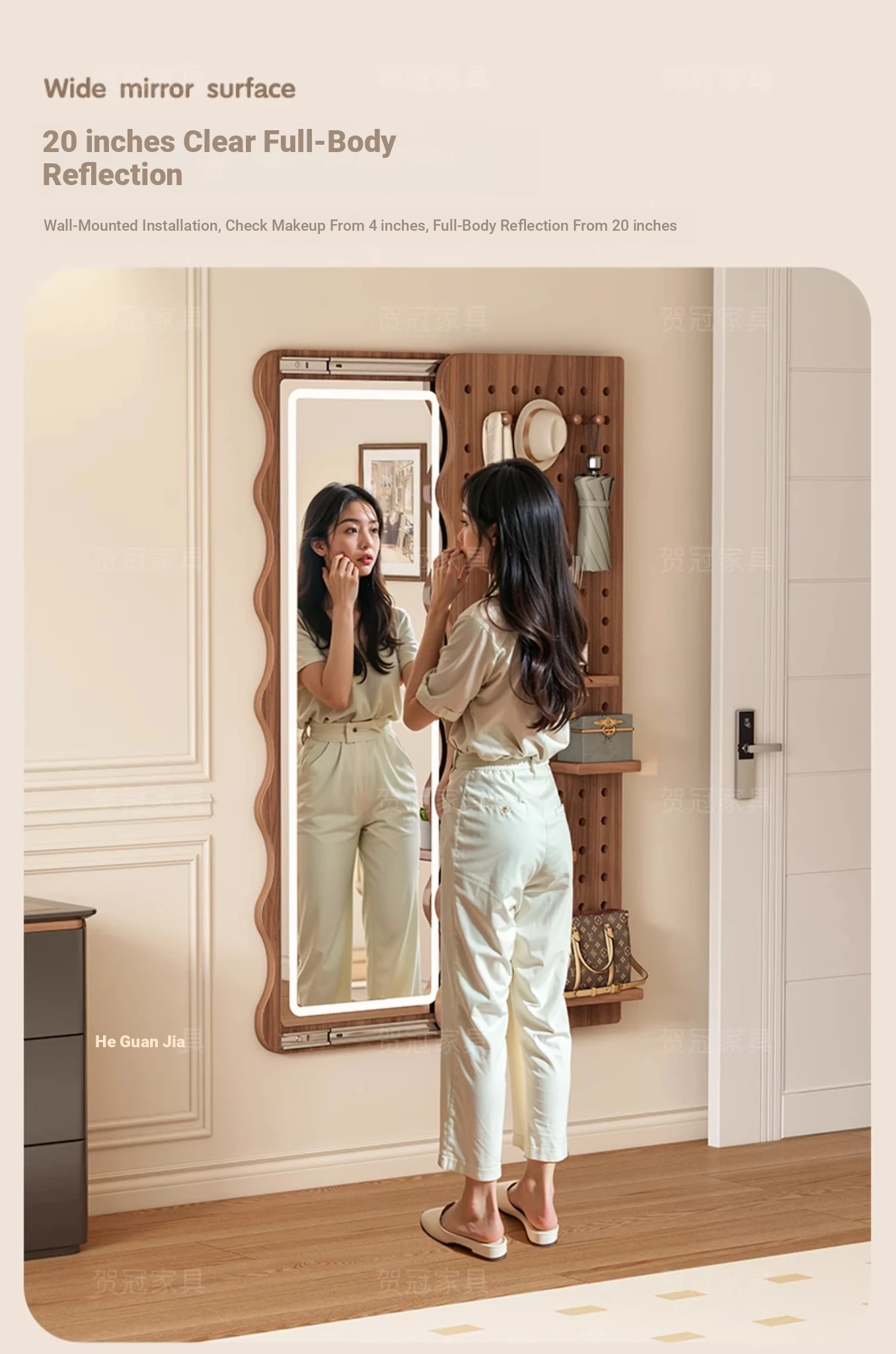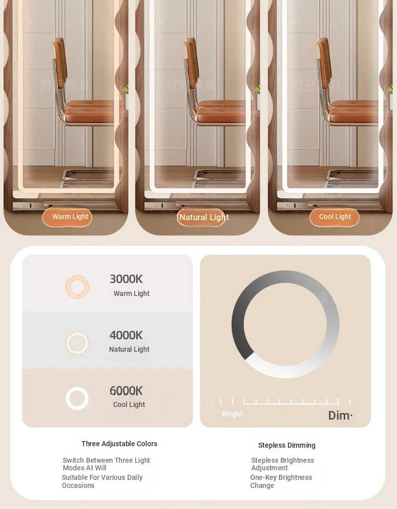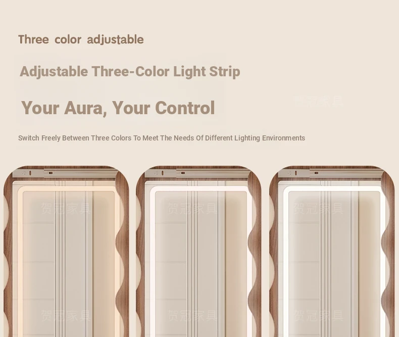 【包安装】宽50x高59.06in 有灯带 奶油白(镜子可左右互装)