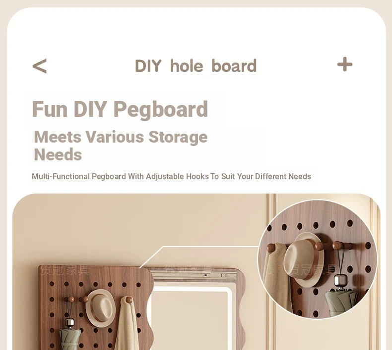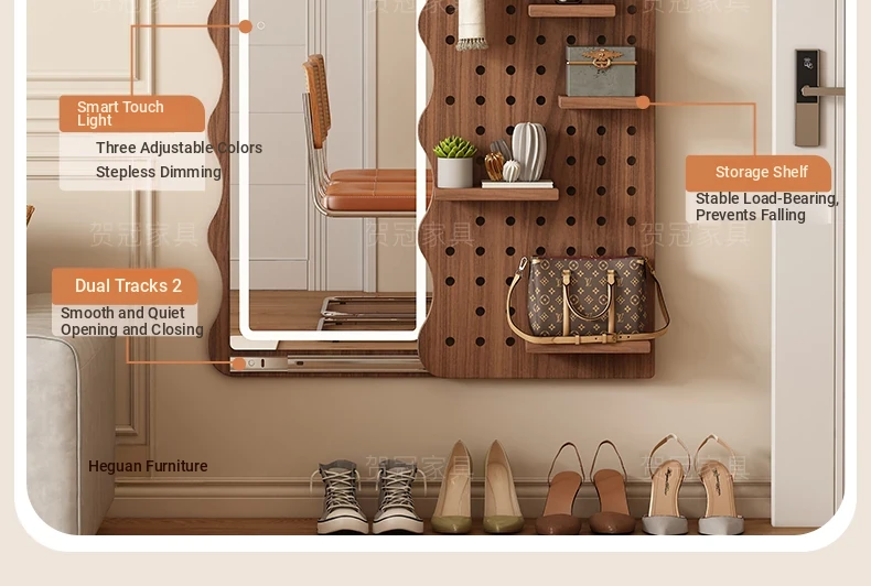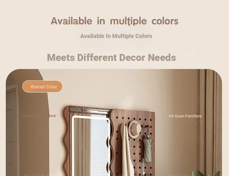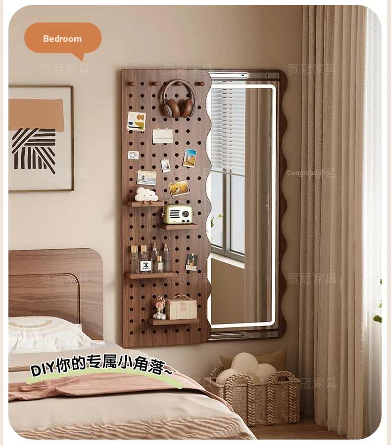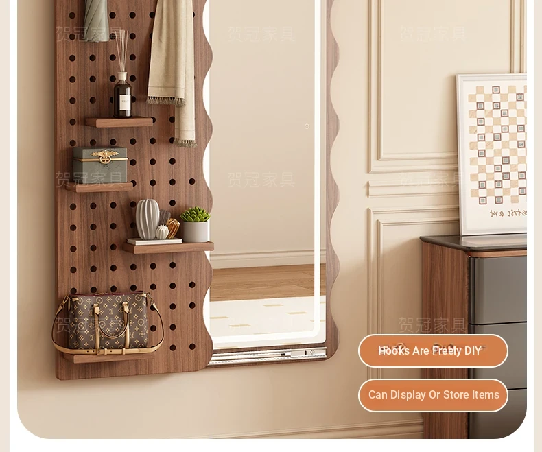 【包安装】宽50x高59.06in 有灯带 胡桃木色(镜子可左右互装)