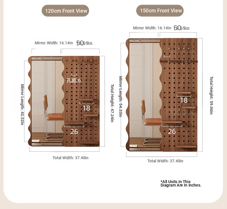 【包安装】宽40x高59.06in 无灯带 奶油白(镜子可左右互装)