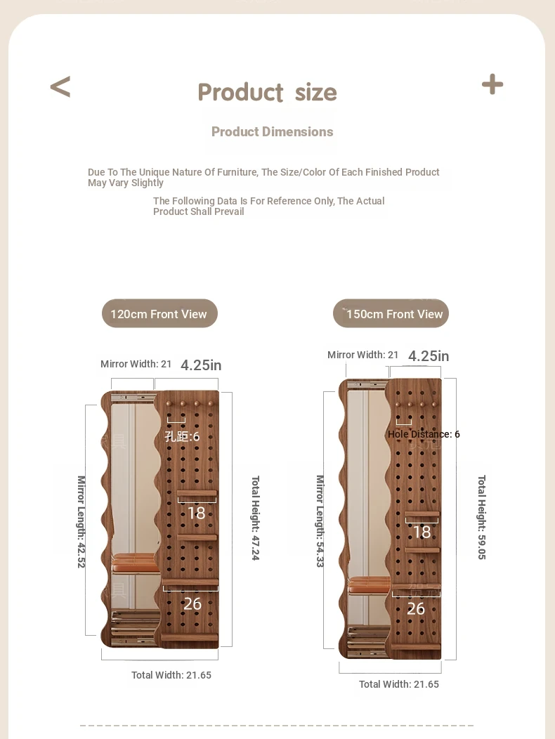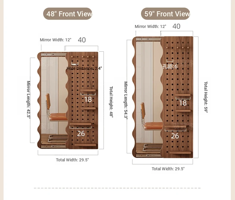 【包安装】宽50x高59.06in 无灯带 胡桃木色(镜子可左右互装)
