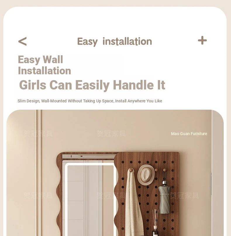 【包安装】宽50x高59.06in 无灯带 奶油白(镜子可左右互装)