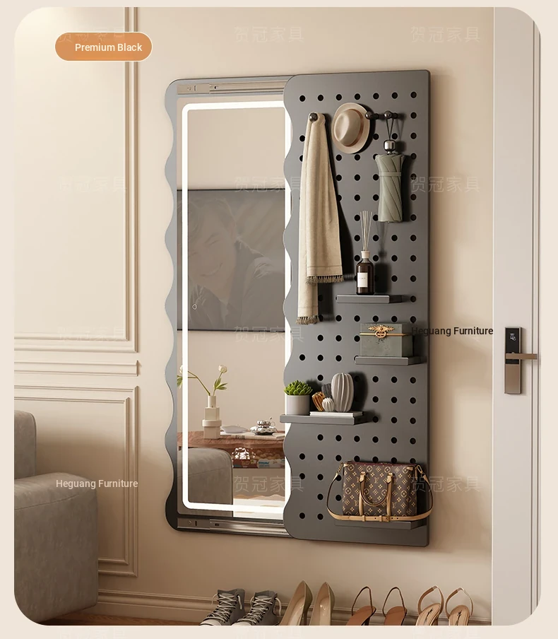 【包安装】宽50x高59.06in 有灯带 高级黑(镜子可左右互装)