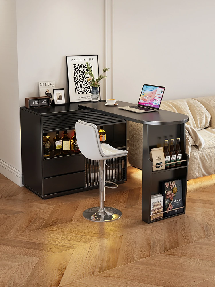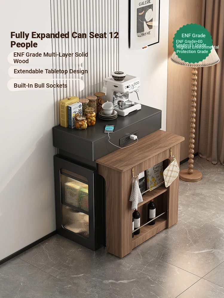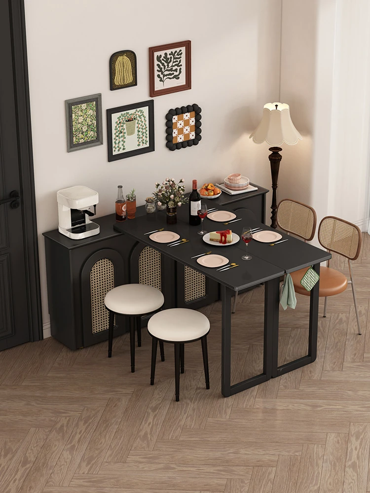 Compact Multifunction Folding Dining Table with Built-in Storage Cabinet – Space-saving Extendable Bar Table for Small Apartments