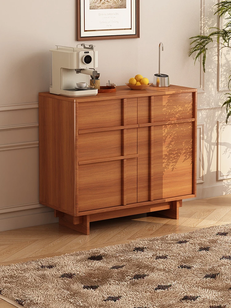 Japanese Minimalist Wooden Buffet Sideboard - Perfect for Small Spaces and Coffee Stations, Natural Wood Finish for Tea and Beverage Storage with Sturdy Construction.