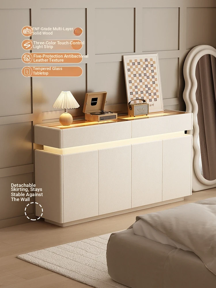 Title: 2024 Luxe Leather Nightstand - Modern Wood Bedside Cabinet with Storage, Smart Sensor Light & Charging Station